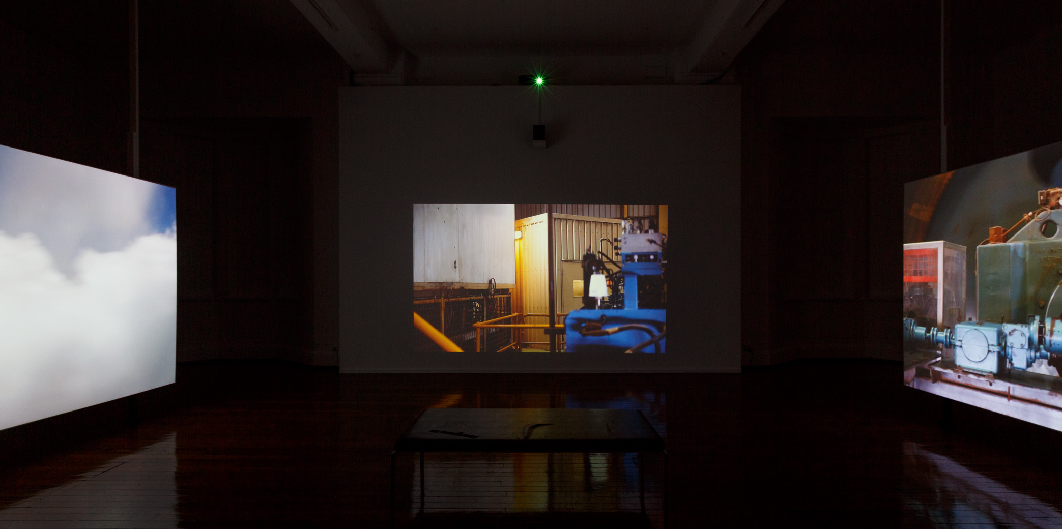 A video installation of cinematic proportions, Robertson leads the viewer through large-scale, multi-channel projections that capture uninhabited fly-in fly-out mining camps of the Pilbara Region. Awaiting their imminent removal, these demountable villages sit in stark contrast with an endless horizon balanced on the edge of reality.