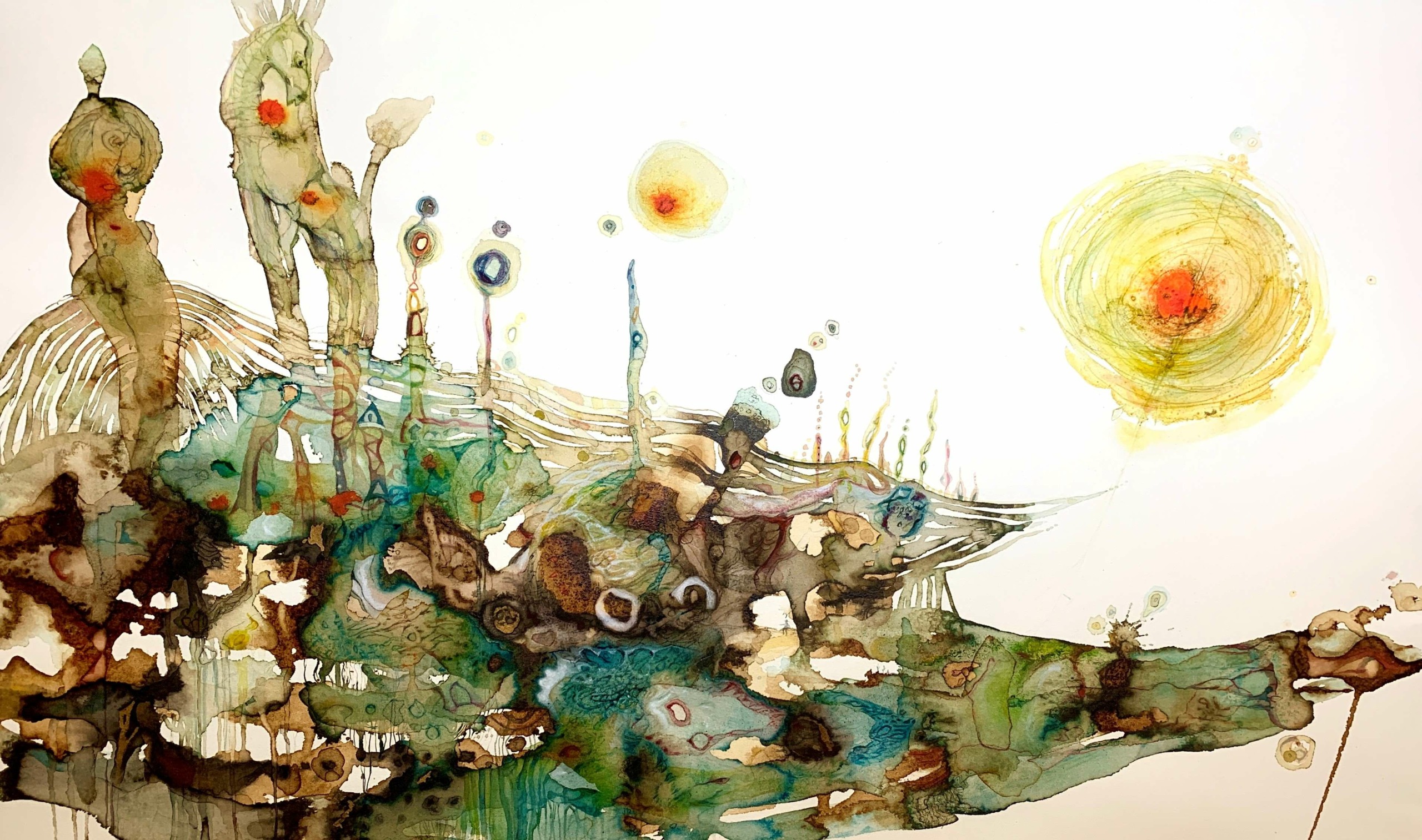 Madeline paints abstract landscapes and still lifes, exploring the colour and edges of contemporary painting. Inspired by long distance walking on trails through forests, along beaches and over mountains, she is ever curious about a language of patterning and threads in the land and body. A once upon a time milliner, Madeline has exhibited locally in Fremantle and faraway in England and Iceland. Exhibitions include Kidogo, Sculpture by the Sea, Mandorla, Town of Claremont, Earlyworks and The Doghouse. She has tertiary degrees in Design History (BA Hons) and Fine Art, and studies in trompe d’oeil, life drawing, interior design and fashion. Aligned with her art practice, Madeline is influenced by her mothering of three and a decades-long practice and training in the Art of Yoga, the understanding of which was elevated through eight years of Ayurvedic studies.